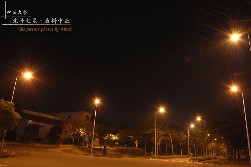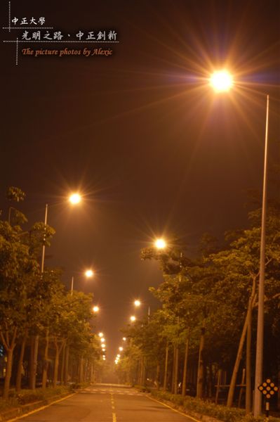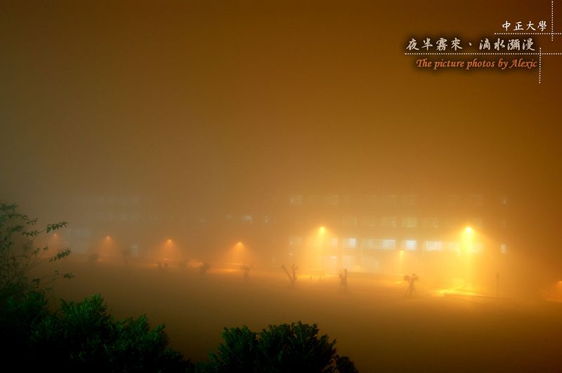 中正大學的上空,二話不說馬上行動,這時候霧氣在加上夜晚燈光的效果可以組合出